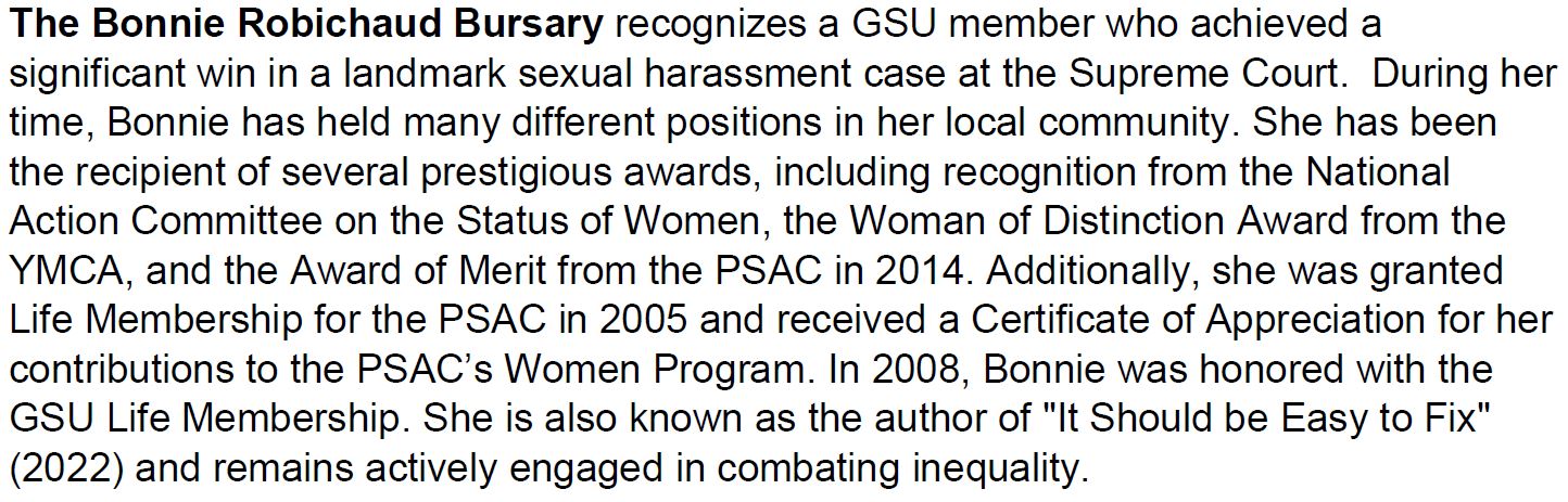 The successful candidates will be selected by the GSU Union Recognition Standing Committee. This committee will review all applications that meet the requirements listed above that are received before the deadline. Bursaries will be awarded based on a combination of academics, financial need and essay.